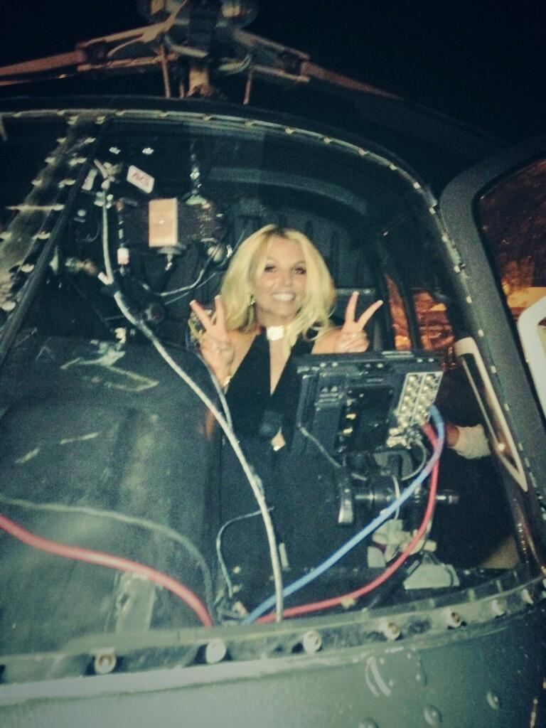 | Britney dentro do helicóptero a acenar para as câmaras |